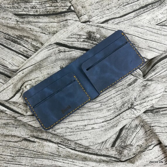 Blue leather wallet, slim wallet, minimalist wallet, slim leather wallet, wallet for him, mini wallet, slim card wallet, card wallet